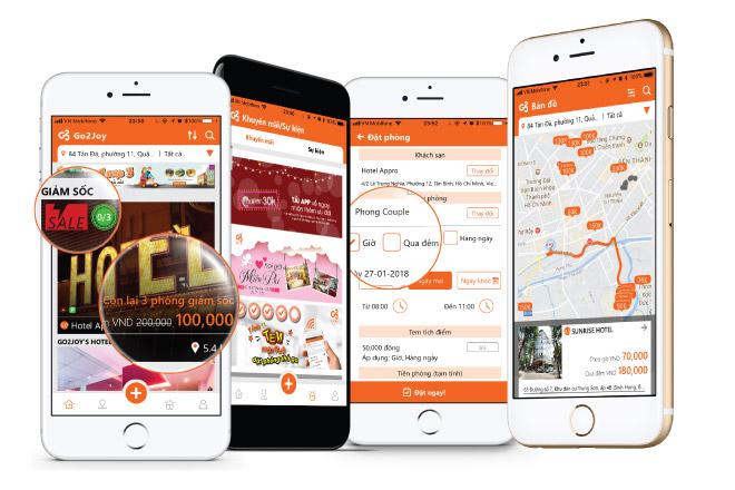 Nắm bắt xu thế mới mẻ này, startup Việt Appro Mobile đã ngay lập tức cho ra mắt ứng dụng Go2Joy chuyên về đặt phòng theo giờ và qua đêm. Chỉ sau một thời gian ngắn, app đã thành công tại thị trường Thành phố Hồ Chí Minh khi sở hữu hàng trăm khách sạn liên kết và hơn 38,000 lượt download… Giờ đây, các bạn trẻ Sài thành đều hưởng ứng Go2Joy nồng nhiệt nhằm tiết kiệm phần nào thời gian rong ruổi khắp nơi tìm phòng lẫn chi phí thuê phòng.