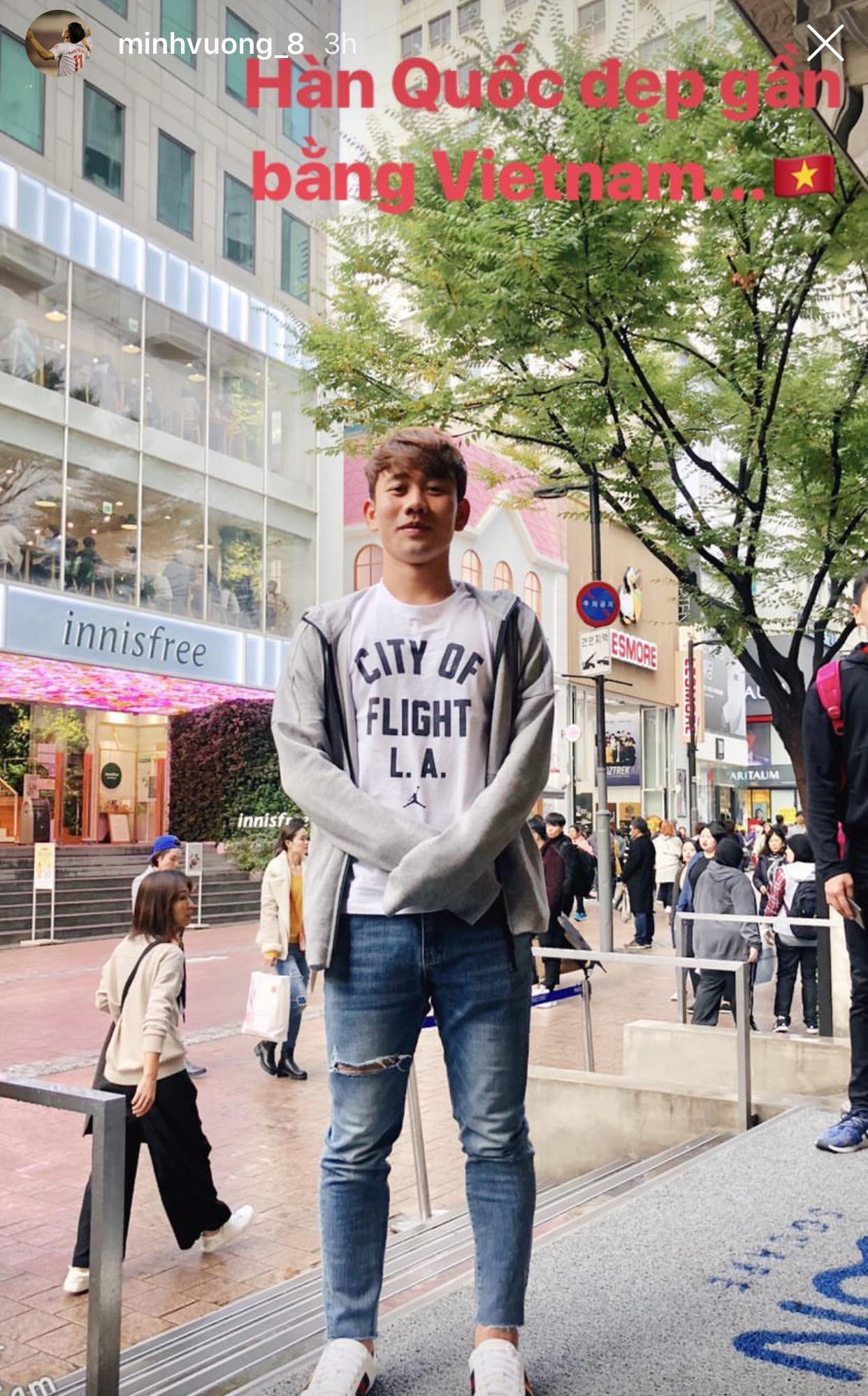 Tiền vệ Trần Minh Vương (HAGL) không quên check in và cho rằng khung cảnh tại Hàn Quốc chỉ đẹp gần bằng Việt Nam.