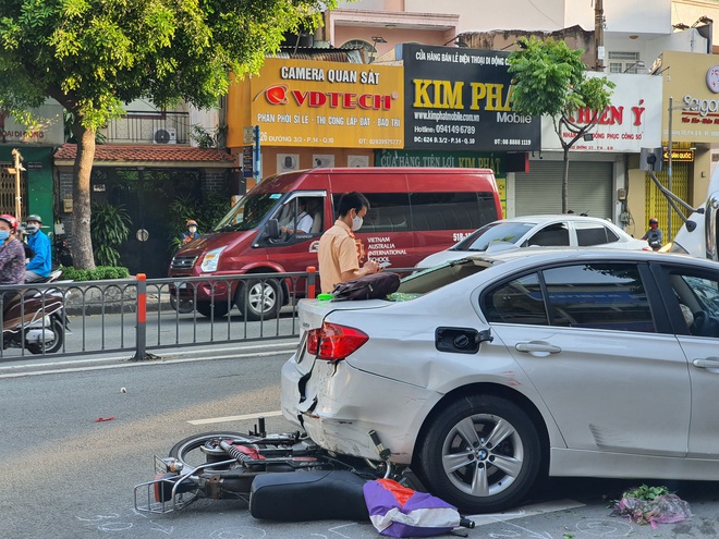 Đến 6h40 sáng cùng ngày, lực lượng công an quận 10 vẫn đang có mặt tại hiện trường, phong tỏa một đoạn đường để điều tiết giao thông. Tại nơi xảy ra vụ việc, phần đầu xe ô tô con bẹp dúm, kính vỡ nát, riêng còn 2 chiếc xe gắn máy bị cuốn dưới gầm xe đang được xử lý, những xe máy bị thương nhẹ đã rời đi.
