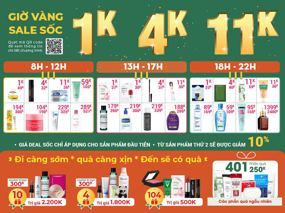 Giờ vàng giá siêu sốc chỉ 1.000 đồng, 4.000 đồng và 11.000 đồng