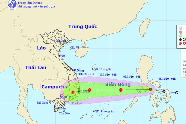 Trong 24 đến 48 giờ tiếp theo, bão di chuyển theo hướng Tây, mỗi giờ đi được khoảng 20km và có khả năng mạnh thêm. Đến 7 giờ ngày 10/11, vị trí tâm bão ở khoảng 12,4 độ Vĩ Bắc; 110,2 độ Kinh Đông, cách bờ biển các tỉnh từ Phú Yên đến Ninh Thuận khoảng 190km về phía Đông. Sức gió mạnh nhất vùng gần tâm bão mạnh cấp 8-9 (60-90km/giờ), giật cấp 11.