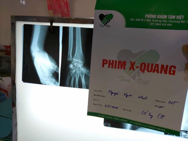 "Từ hôm đỡ cháu, tôi đã thấy đau tay phải. Tôi nghĩ chắc vài hôm sẽ hết đau, nhưng đợi mãi vẫn không khỏi nên hôm qua tôi đi khám bác sĩ. Khi đến bác sĩ khám thì được chẩn đoán là rạn xương ngón tay", anh Mạnh chia sẻ.