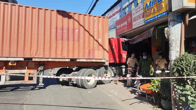 Theo nhân chứng, nạn nhân đang đứng trước cửa hàng mua đồ thì bị xe container lao vào tông tử vong.